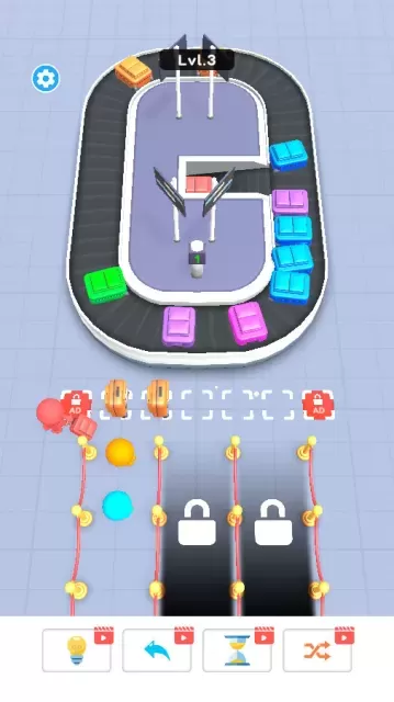 A: As a unique packing puzzle game, you merge luggage on a moving conveyor belt.