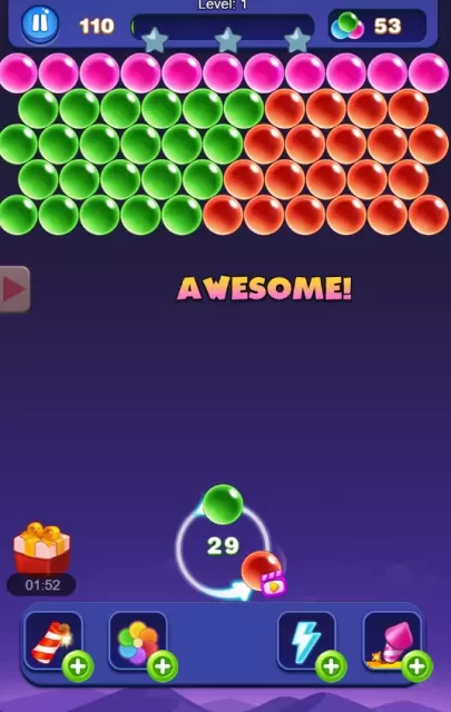 - Connect 3+ same-color bubbles for satisfying eliminations