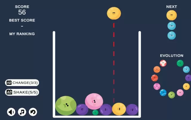 Welcome to Cute Ball Evolution - where the charm of ball merge evolution game mechanics meets the irresistible appeal of a cute ball upgrading game! This delightful casual game online lets you merge colorful balls on a sleek dark background, following evolution charts to create increasingly adorable creatures. Stack, merge, and evolve your way to high scores in this perfectly portable puzzle experience!
