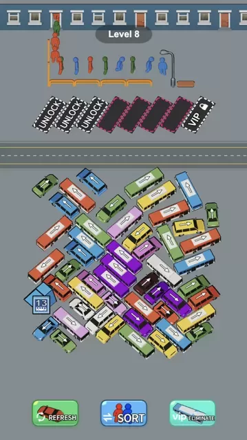 🚗 Unique Vehicle Mechanics: Park cars in perfect color sequence