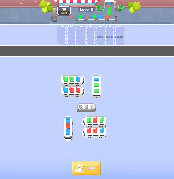 A: As a seat dispatch puzzle, it adds vehicle management to color matching.